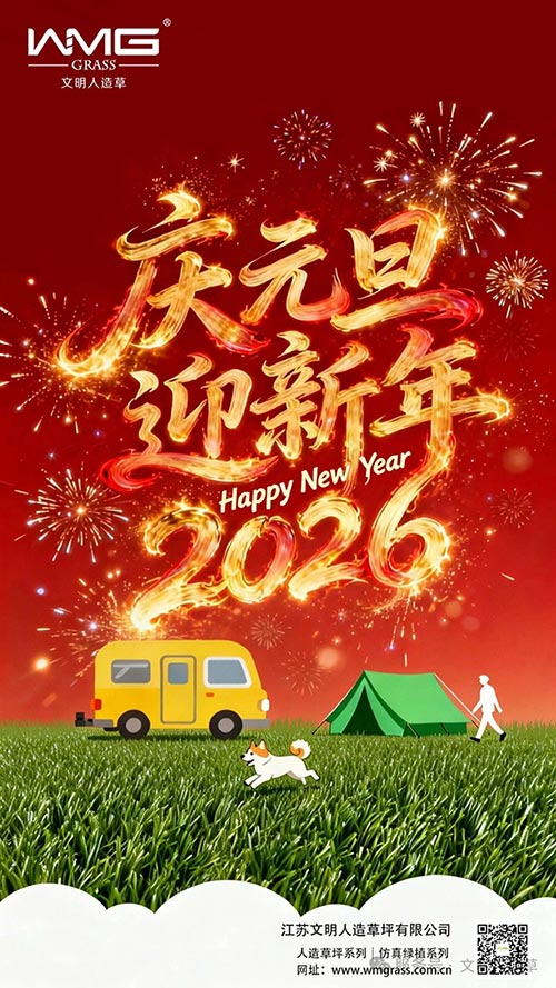 时光流转,华章日新。值此 2026 年元旦佳节,江苏文明体育集团向全体客户、合作伙伴,致以最诚挚的新年祝福!过去一年,我们深耕人造草坪领域,以匠心坚守品质,以创新驱动发展,为运动场地、景观绿化等场景打造了无数优质产品与解决方案。每一份认可,都离不开您的信任与支持。新的一年,江苏文明体育集团将继续秉持 “品质为先,服务至上” 的理念,以更专业的技术、更完善的服务,与您携手同行,共绘绿色发展新蓝图!祝您元旦快乐,阖家幸福,事业蒸蒸日上!