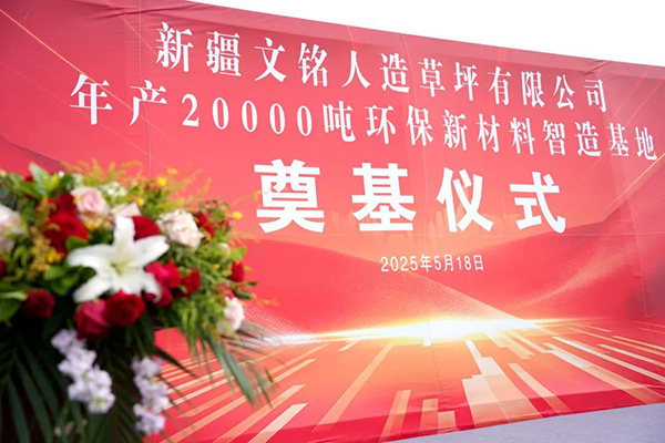 2025年5月18日,文明体育集团旗下公司——新疆文铭人造草坪有限公司在霍尔果斯经济开发区清水河配套园区隆重举行年产20000吨环保新材料智造基地的奠基仪式。