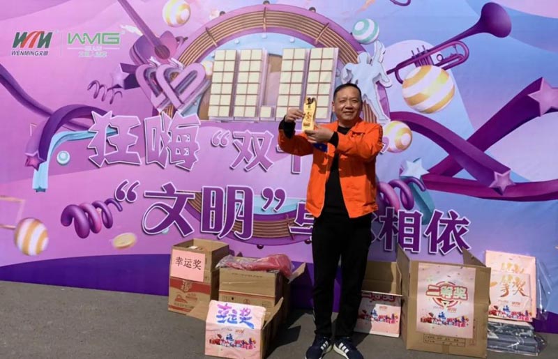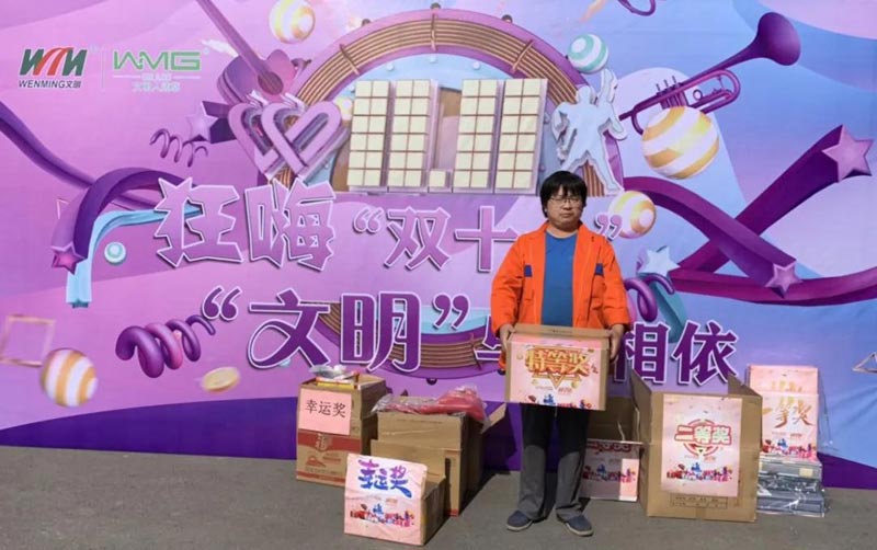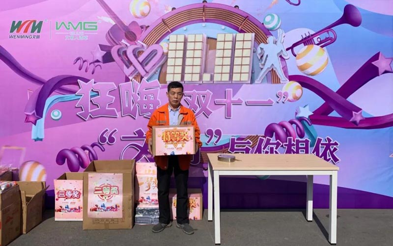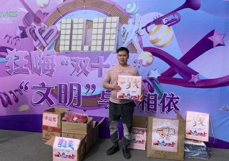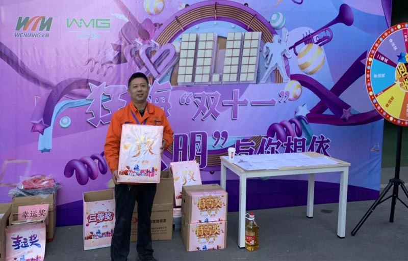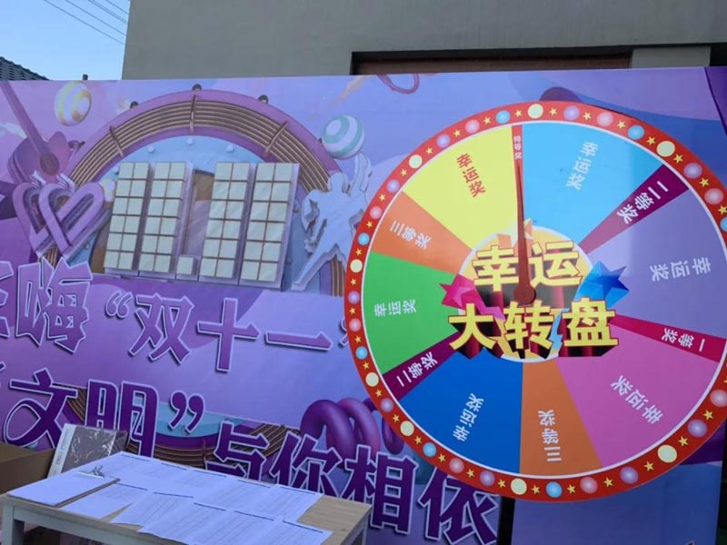 双十一 幸运大转盘 地点:综合办公楼一楼 时间:11.11全天 人员:文明体育全体人员 超大福利放送 幸运大抽奖 特等奖:电饭煲 一等奖:床上四件套 二等奖:热水壶 三等奖:金龙鱼色拉油一桶 幸运奖:护手霜、唇膏、洗面奶、牙膏、洗发水、乳液 活动现场 部分获奖图 恭喜特等奖和一等奖的同事! 本次活动每位文明体育的员工都获得了奖品! 感谢组织活动的工作人员 让大家过了一个快乐的双十一