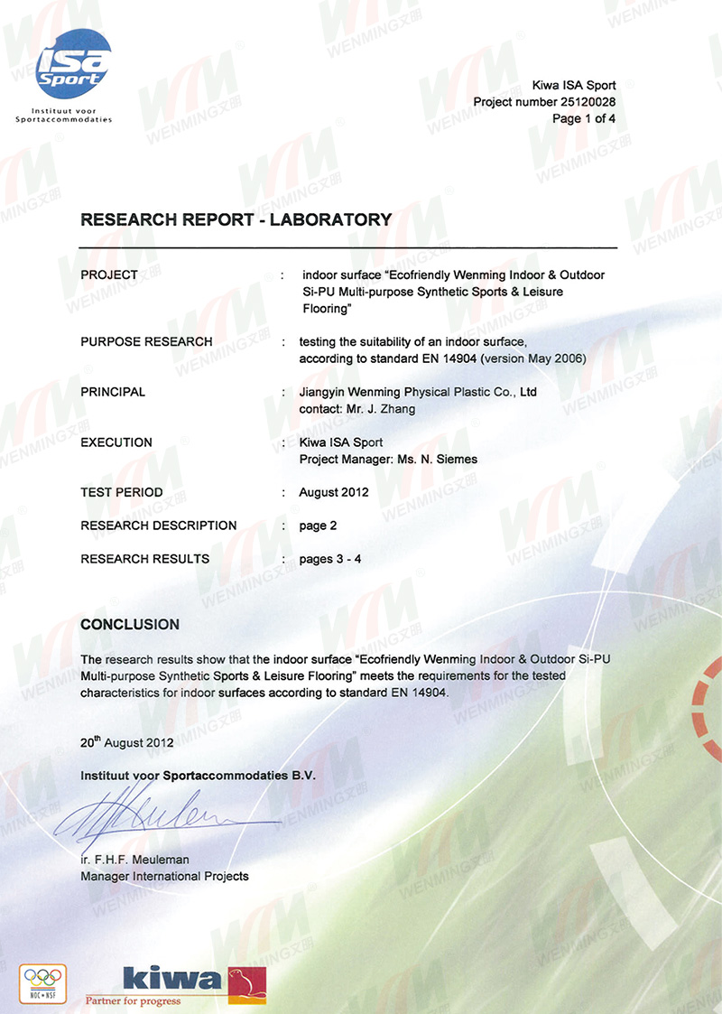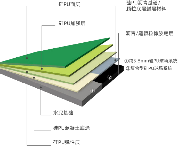 硅PU球场材料(SPU)是在PU球场材料的基础上开发研制出来的新一代球场铺面材料。该材料是以聚氨酯(PU)材料与含有有 机硅成分的材料科学地复合在一起,所生产出来的材料用在球场面层上,从根本上有效地解决了PU球场材料在zhuan业性能、环保 施工、使用寿命、日常维护等方面的不足,具有革命性的创新性能。