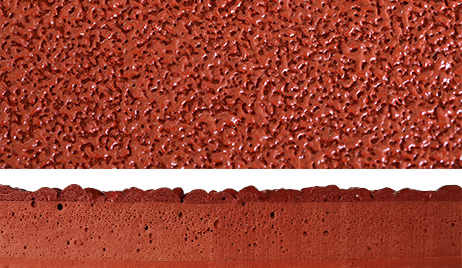 自结纹型塑胶跑道施工应用特点:1、面层采用特制PU材质,喷涂后自然形成结纹,耐磨耗性,抗刮伤性能场大大优于颗粒面层。2、全PU材料,弹性佳,有效提高运动员竞技水平。3、防滑性好,避免跑步中滑倒。保护运动员脚踝,膝盖等关节,并有效防止其他伤害。4、耐候性,耐光照性,耐水性优异,不易老化损坏。5、颜色持久,不褪色,日久常新。抗污性强,易于清洁保养。